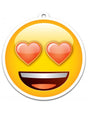 Désodorisant auto Emoji Love, parfum fraise. Élimine odeurs, ambiance fraîche et fruitée.